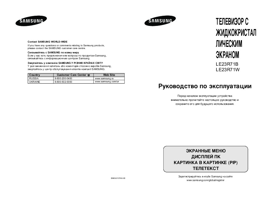 Перед Вами Инструкция - LE23R71B. Вы можете ознакомиться и скачать данное руководство по эксплуатации бесплатно. Инструкция по применению на русском языке, предложенная производителем, позволяет правильно использовать Вашу бытовую технику и электронику.