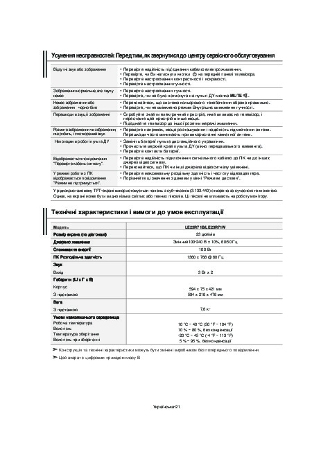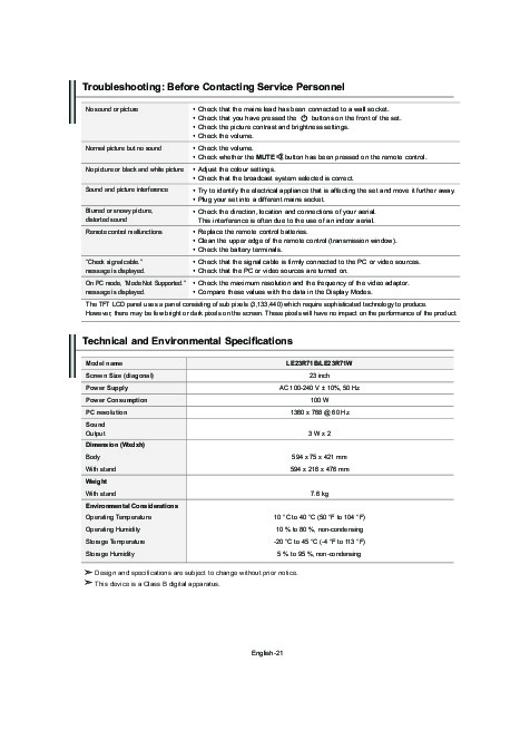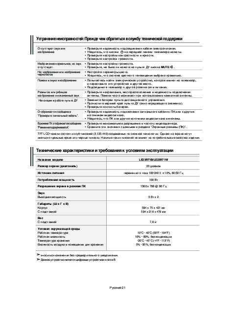 Наша цель состоит в том, чтобы предоставить вам быстрый доступ к содержанию инструкции для - LE23R71B. С помощью онлайн просмотра, Вы можете быстро просмотреть содержимое инструкции и найти решение проблемы с - LE23R71B.