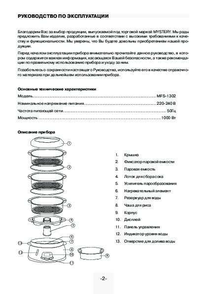 Для просмотра инструкции пользователя - MFS-1302 на полном экране, используйте кнопку «Открыть в Pdf-viewer».