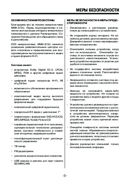 С помощью онлайн просмотра, Вы можете быстро просмотреть содержимое инструкции и найти решение проблемы с - MMK-815U.