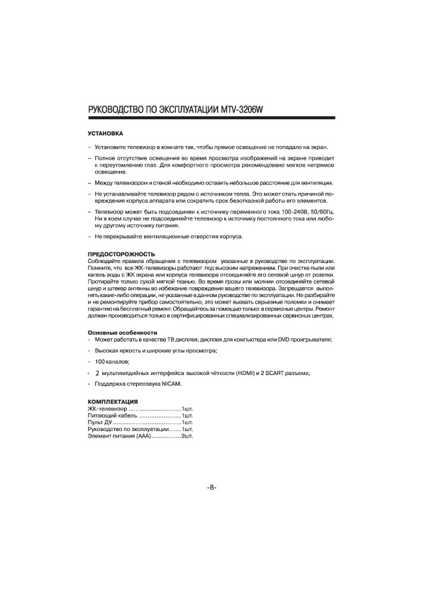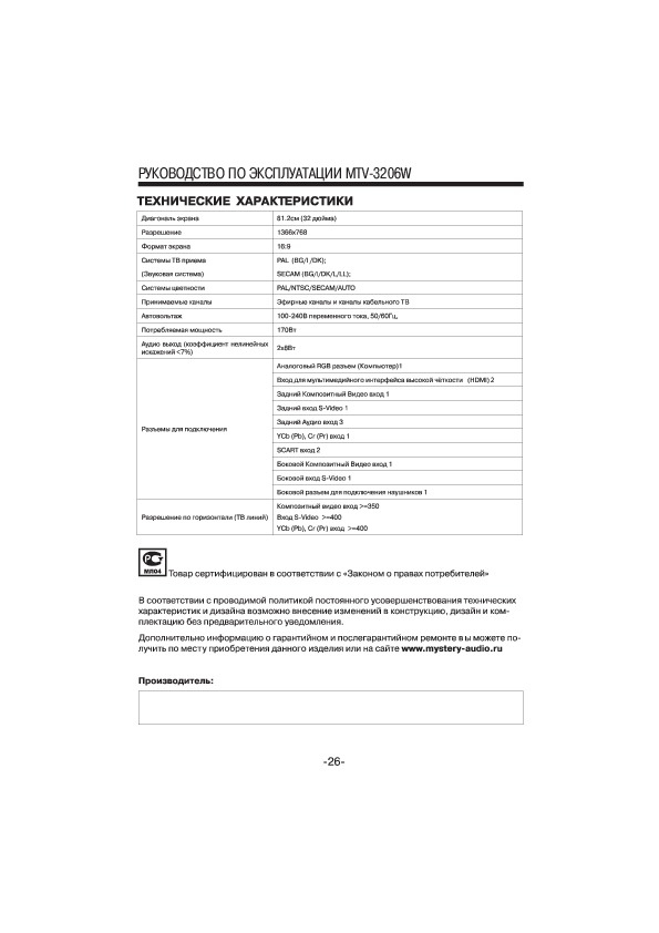 Инструкция Mystery - MTV-3206W