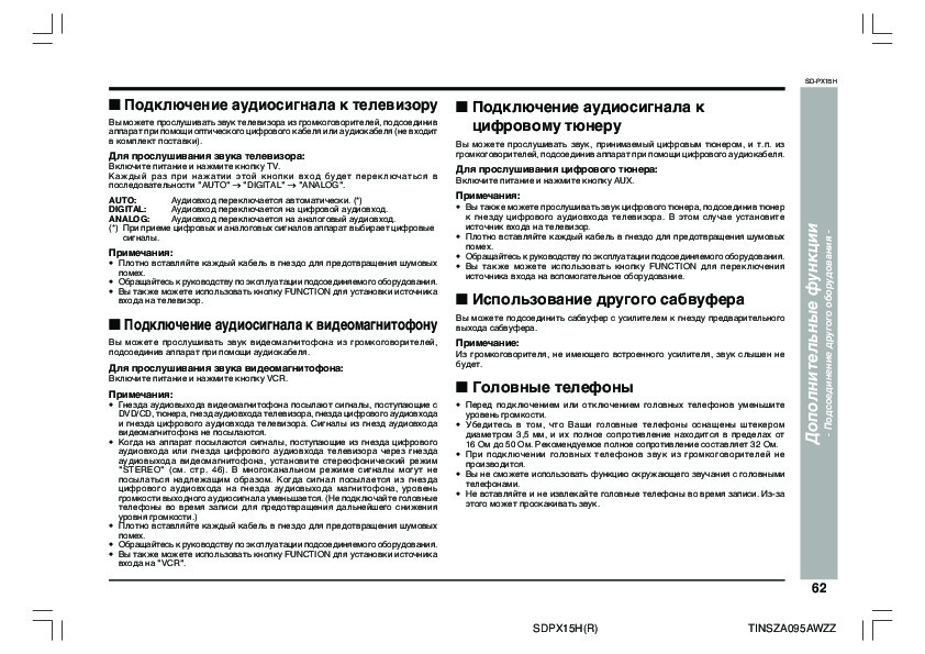 Если листать руководство пользователя - SD-PX15H прямо на сайте, не очень удобно для Вас, есть два возможных решения: