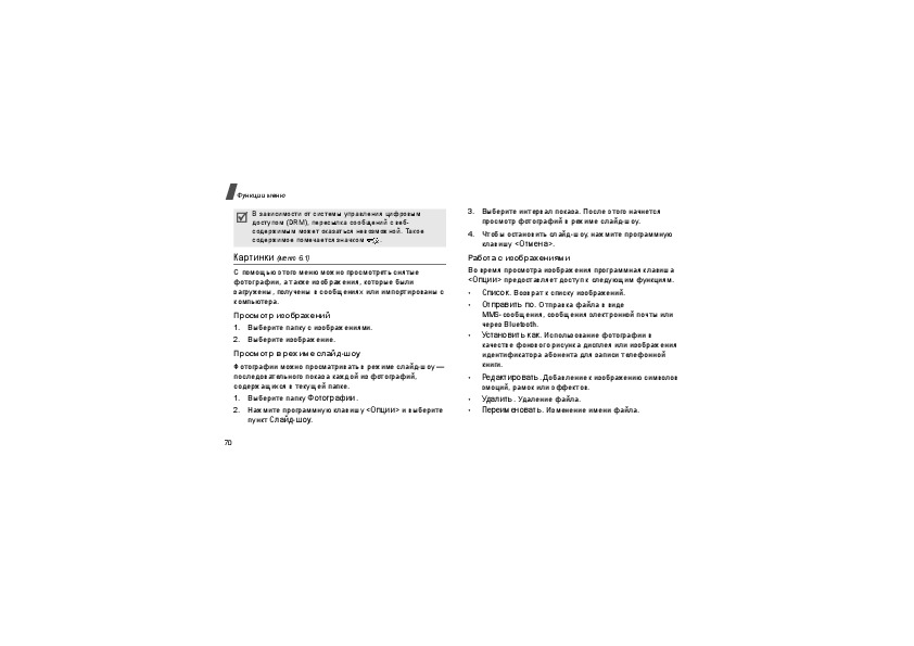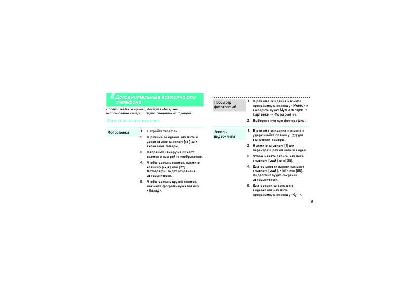 Наша цель состоит в том, чтобы предоставить вам быстрый доступ к содержанию инструкции для - SGH-E370. С помощью онлайн просмотра, Вы можете быстро просмотреть содержимое инструкции и найти решение проблемы с - SGH-E370.