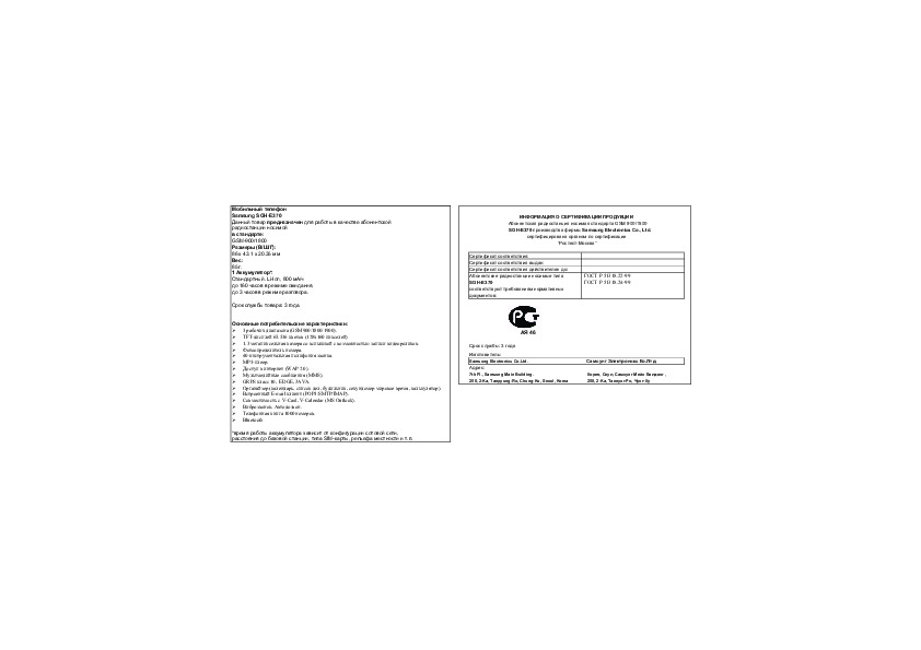 Перед Вами Инструкция - SGH-E370. Вы можете ознакомиться и скачать данное руководство по эксплуатации бесплатно. Инструкция по применению на русском языке, предложенная производителем, позволяет правильно использовать Вашу бытовую технику и электронику.