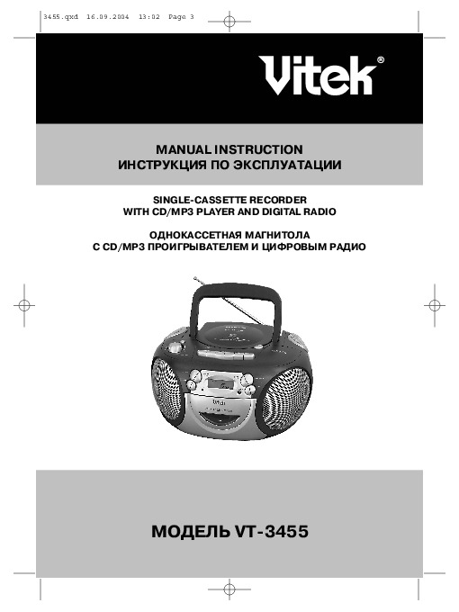 Перед Вами Инструкция - VT-3455. Вы можете ознакомиться и скачать данное руководство по эксплуатации бесплатно. Инструкция по применению на русском языке, предложенная производителем, позволяет правильно использовать Вашу бытовую технику и электронику.