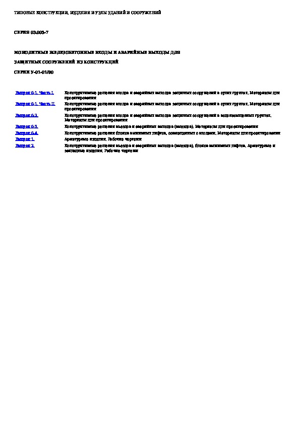 Наша цель состоит в том, чтобы предоставить вам быстрый доступ к содержанию документа Монолитные железобетонные входы и аварийные выходы для защитных сооружений из конструкций серии У-01-01/80.