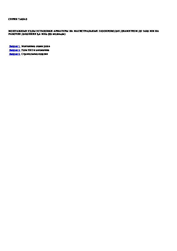 Наша цель состоит в том, чтобы предоставить вам быстрый доступ к содержанию документа Монтажные узлы установки арматуры на магистральных газопроводах диаметром до 1420 мм на рабочее давление 5,4 МПа (55 кгс/кв.см).
