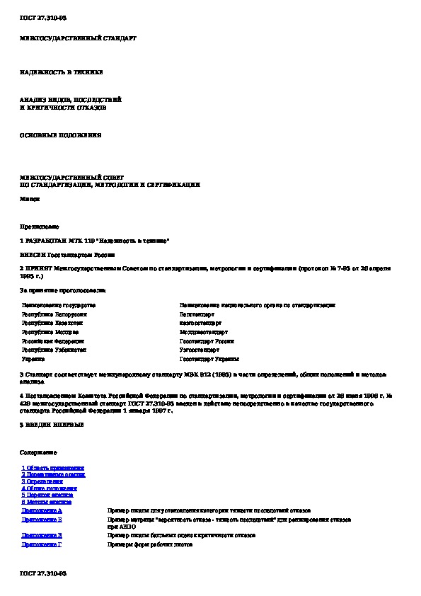 ГОСТ 27.310-95: Надежность в технике. Анализ видов, последствий и критичности отказов. Основные положения