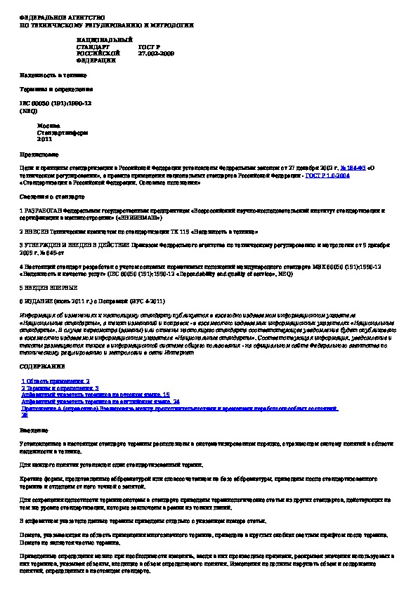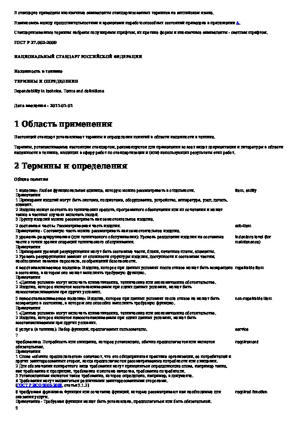 Обозначение: ГОСТ Р 27.002-2009