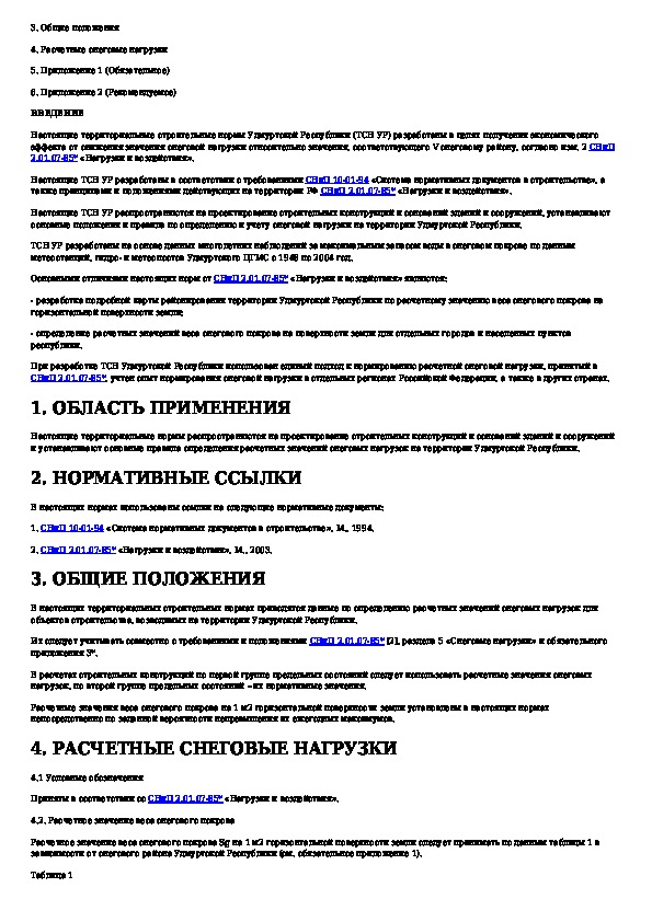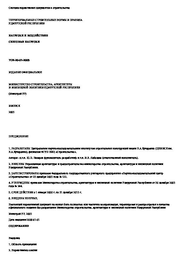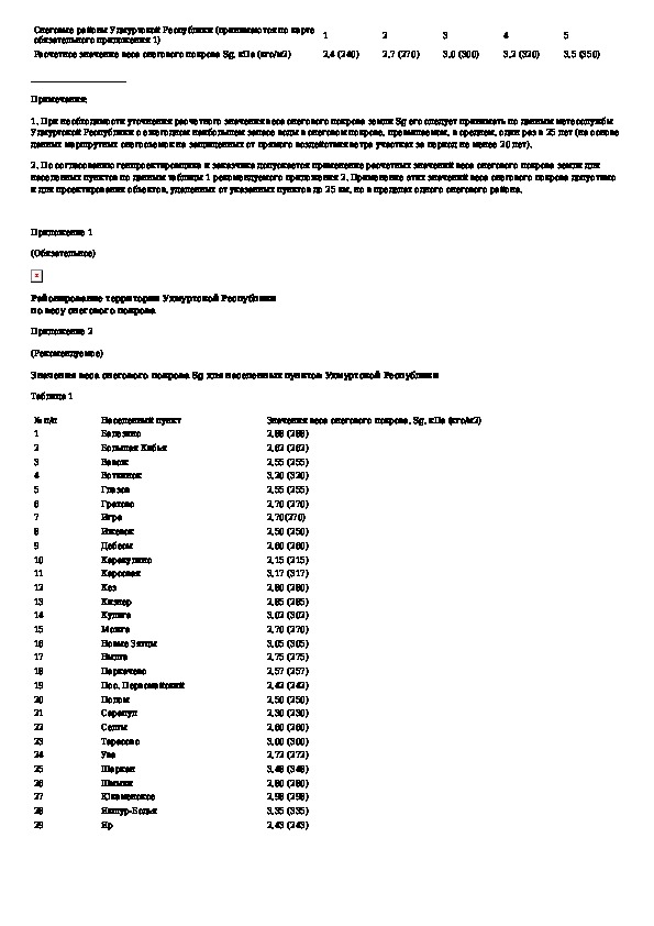 ТСН 20-01-2005: Нагрузки и воздействия. Снеговые нагрузки. Удмуртская республика