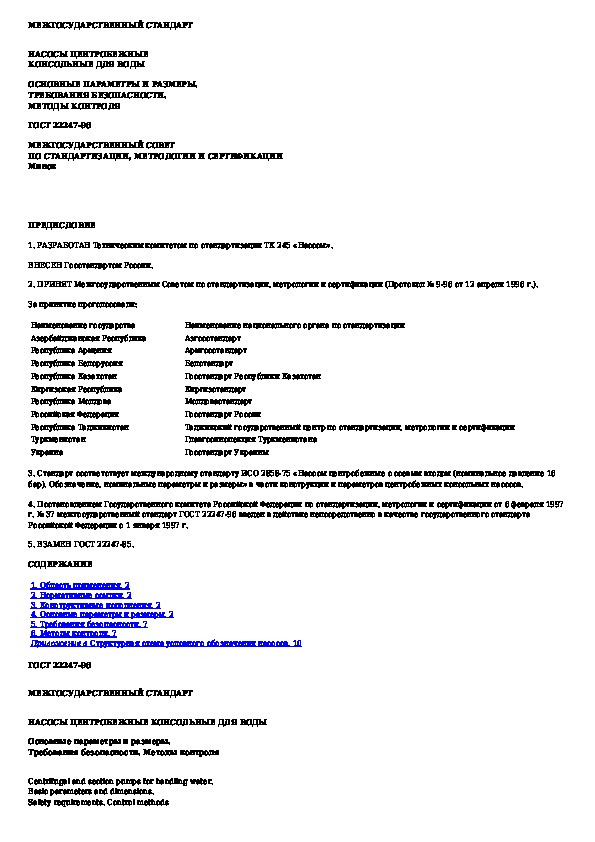 Наша цель состоит в том, чтобы предоставить вам быстрый доступ к содержанию документа Насосы центробежные консольные для воды. Основные параметры и размеры. Требования безопасности. Методы контроля.