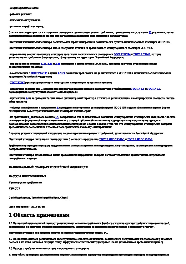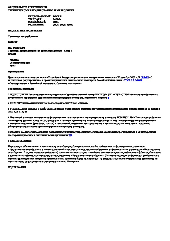 ГОСТ Р 54806-2011: Насосы центробежные. Технические требования. Класс 1