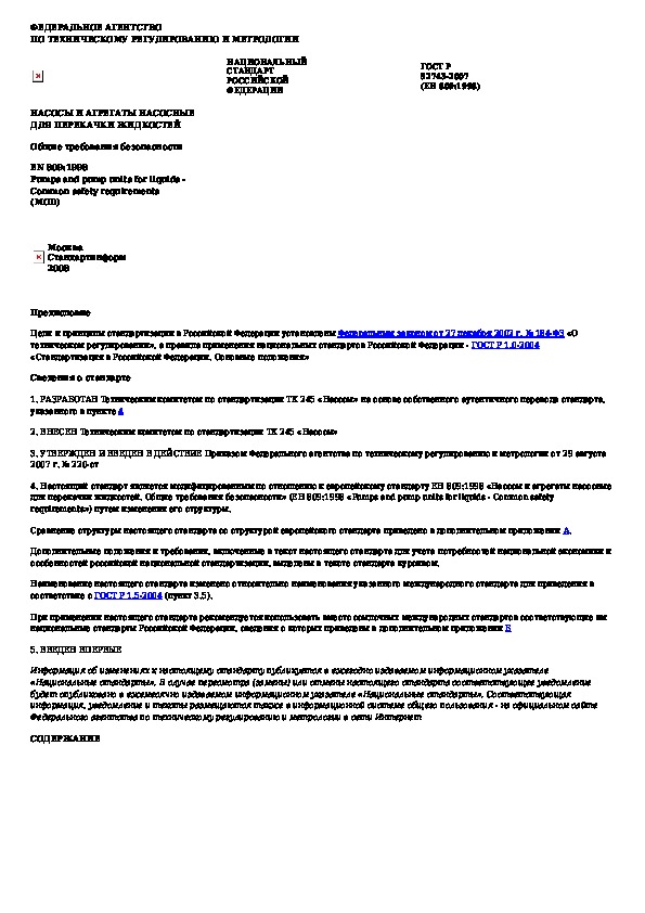 Наша цель состоит в том, чтобы предоставить вам быстрый доступ к содержанию документа Насосы и агрегаты насосные для перекачки жидкостей. Общие требования безопасности.