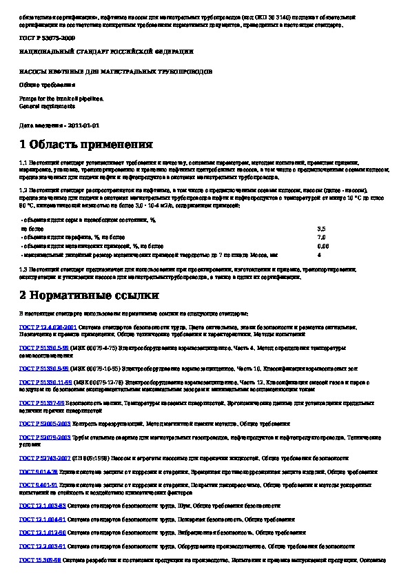 Наша цель состоит в том, чтобы предоставить вам быстрый доступ к содержанию документа Насосы нефтяные для магистральных нефтепроводов. Общие требования.