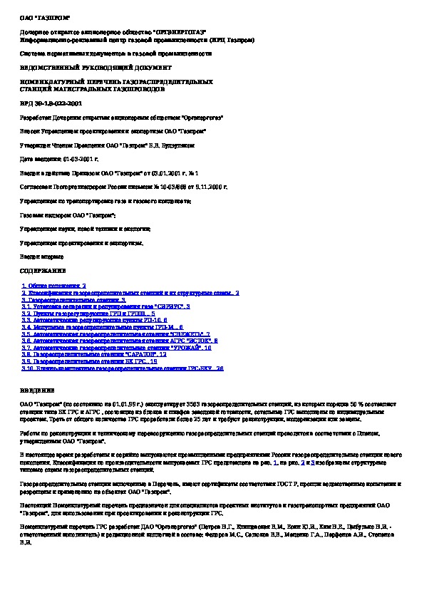 Наша цель состоит в том, чтобы предоставить вам быстрый доступ к содержанию документа Номенклатурный перечень газораспределительных станций магистральных газопроводов.