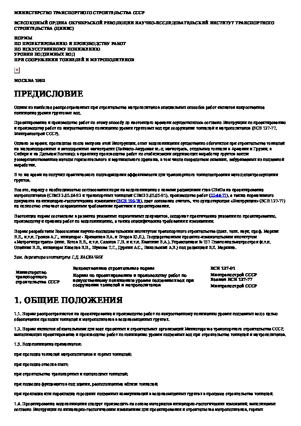 Наша цель состоит в том, чтобы предоставить вам быстрый доступ к содержанию документа Нормы по проектированию и производству работ по искусственному понижению уровня подземных вод при сооружении тоннелей и метропол.