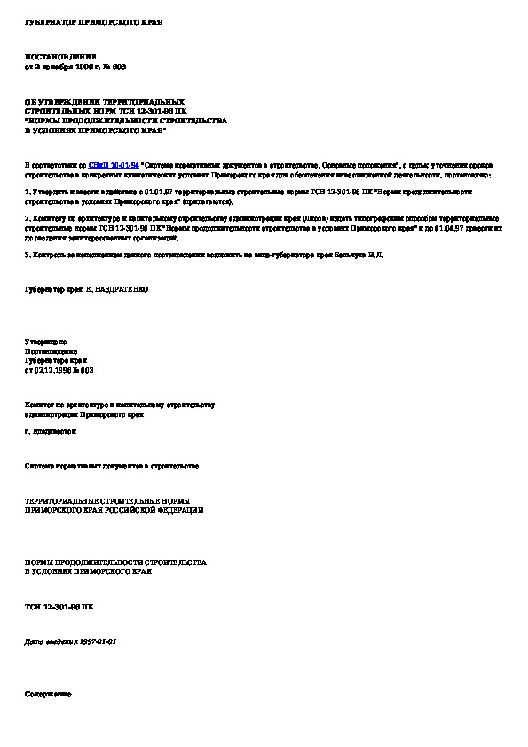 Наша цель состоит в том, чтобы предоставить вам быстрый доступ к содержанию документа Нормы продолжительности строительства в условиях Приморского края.