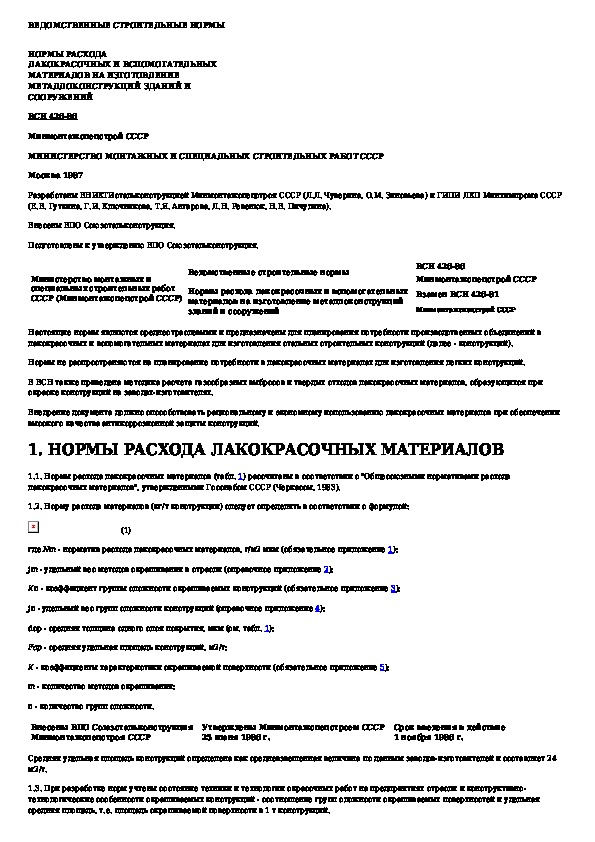ВСН 426-86: Нормы расхода лакокрасочных и вспомогательных материалов на изготовление металлоконструкций зданий и сооружений