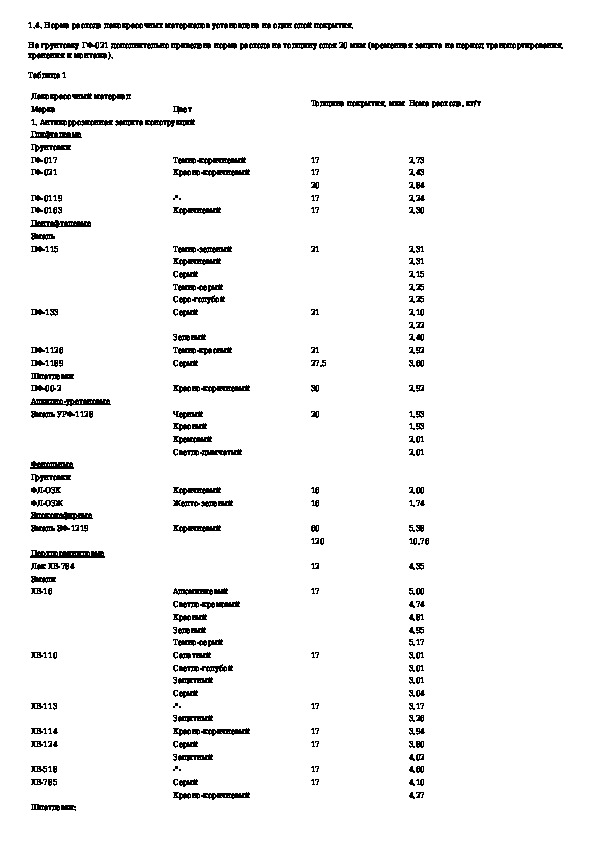 Нормы расхода лакокрасочных и вспомогательных материалов на изготовление металлоконструкций зданий и сооружений