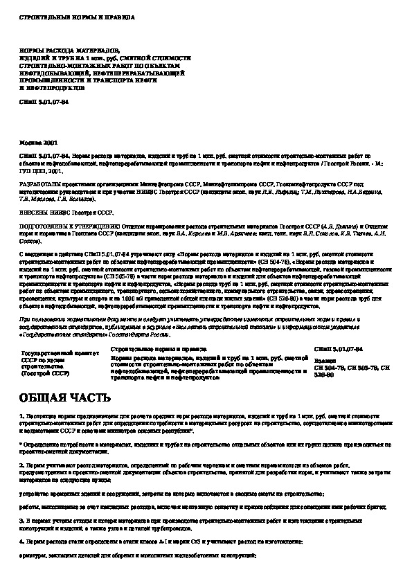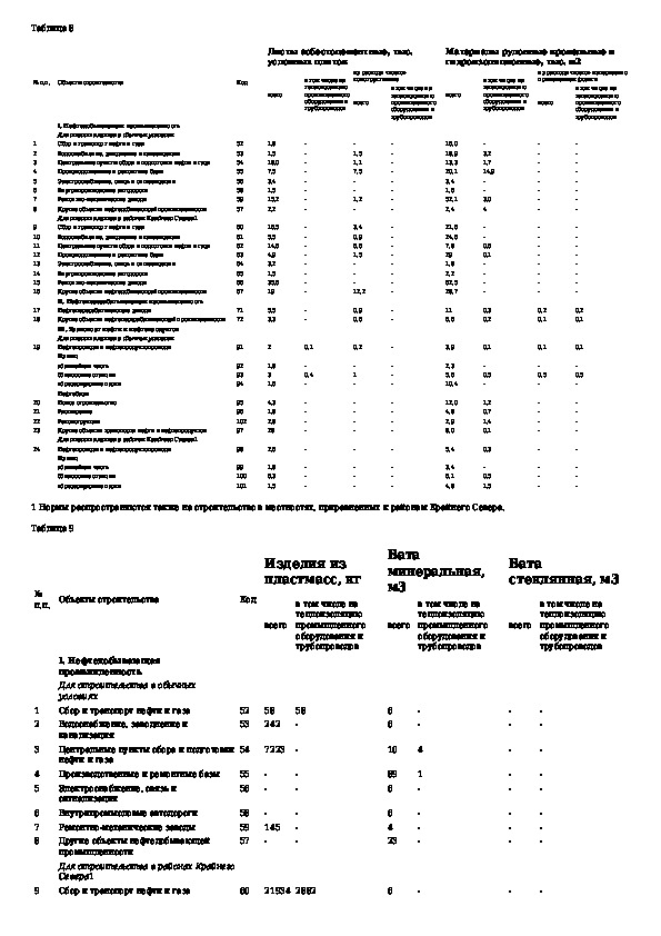 СНиП 5.01.07-84: Нормы расхода материалов, изделий и труб на 1 млн. руб. сметной стоимости строительно-монтажных работ по объектам нефтедобывающей,