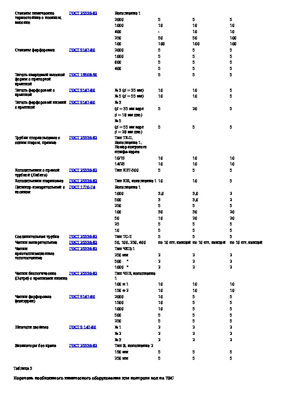 Нормы расхода реактивов и лабораторной посуды для химического контроля на тепловых электростанциях
