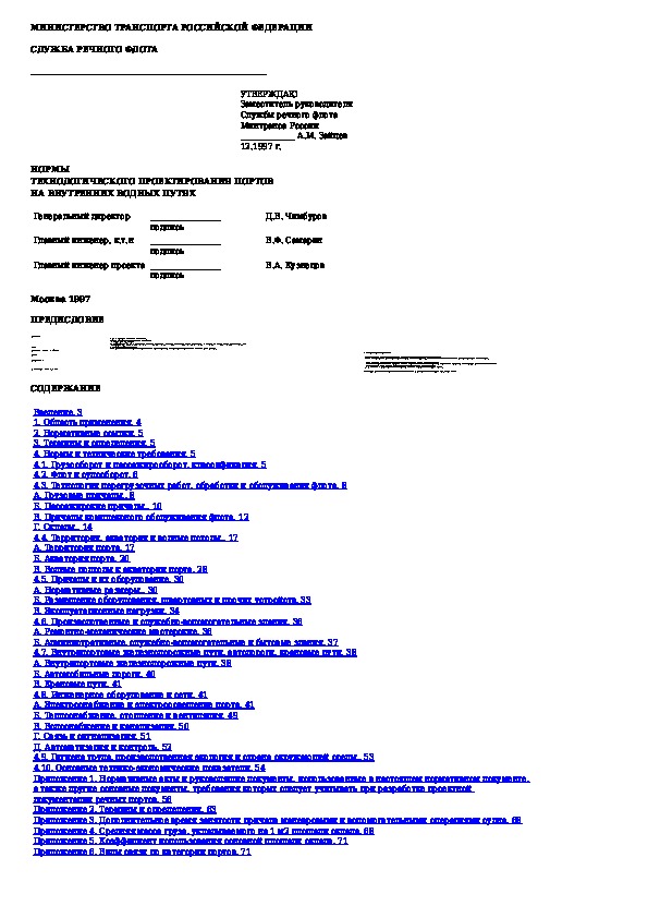 Наша цель состоит в том, чтобы предоставить вам быстрый доступ к содержанию документа Нормы технологического проектирования портов на внутренних водных путях.
