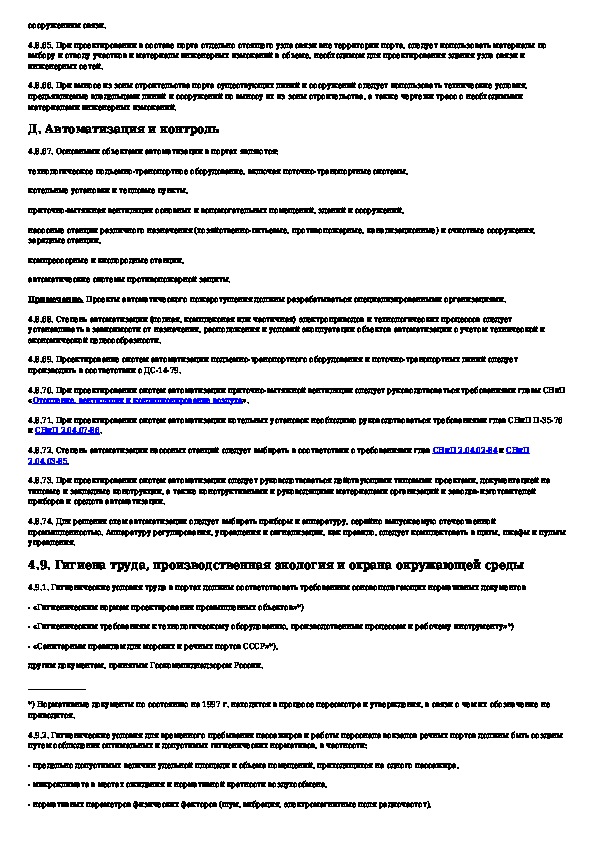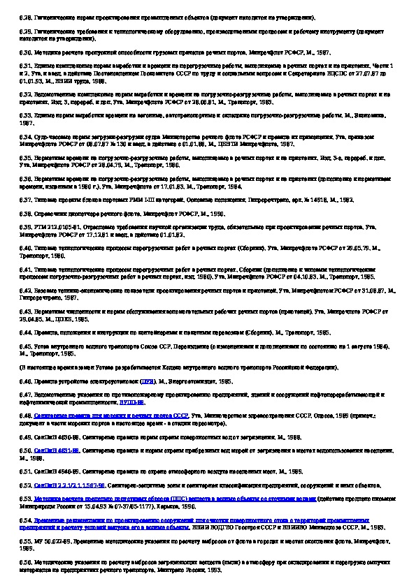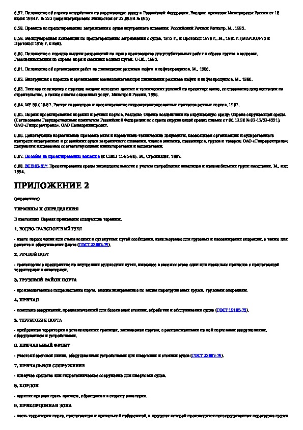 Нормы технологического проектирования портов на внутренних водных путях