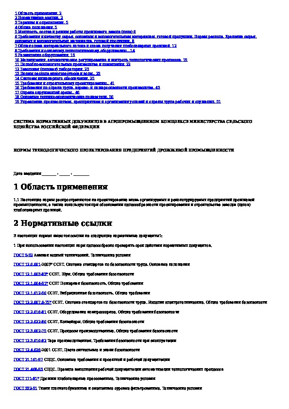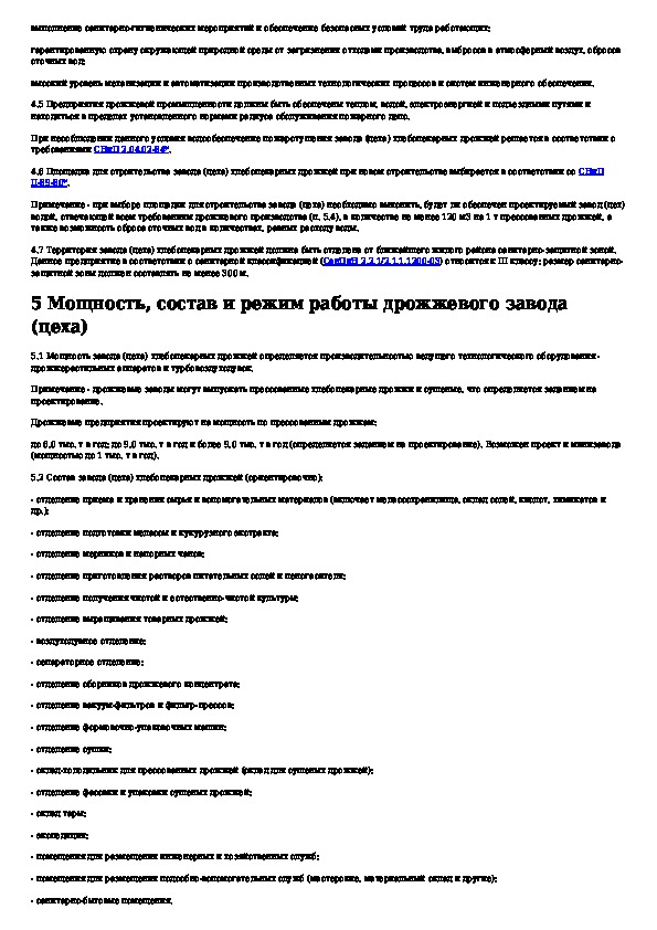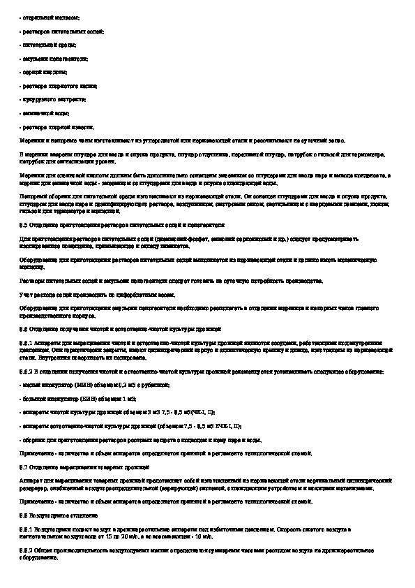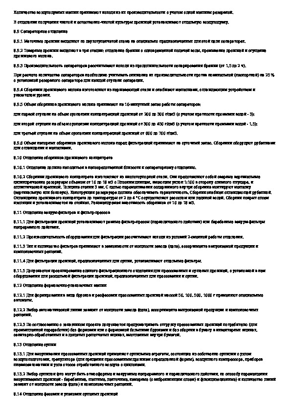 Нормы технологического проектирования предприятий дрожжевой промышленности