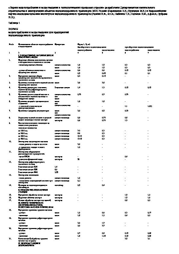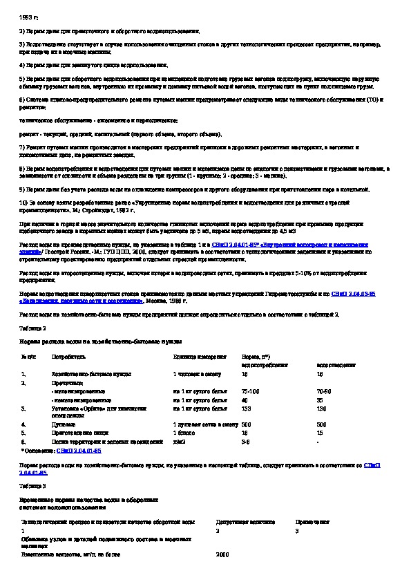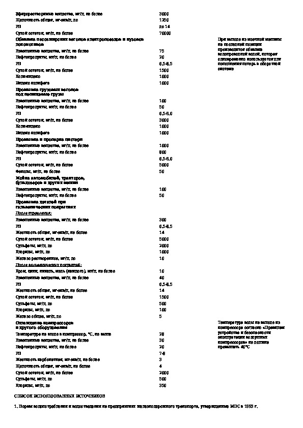 Нормы водопотребления и водоотведения в технологических процессах отрасли