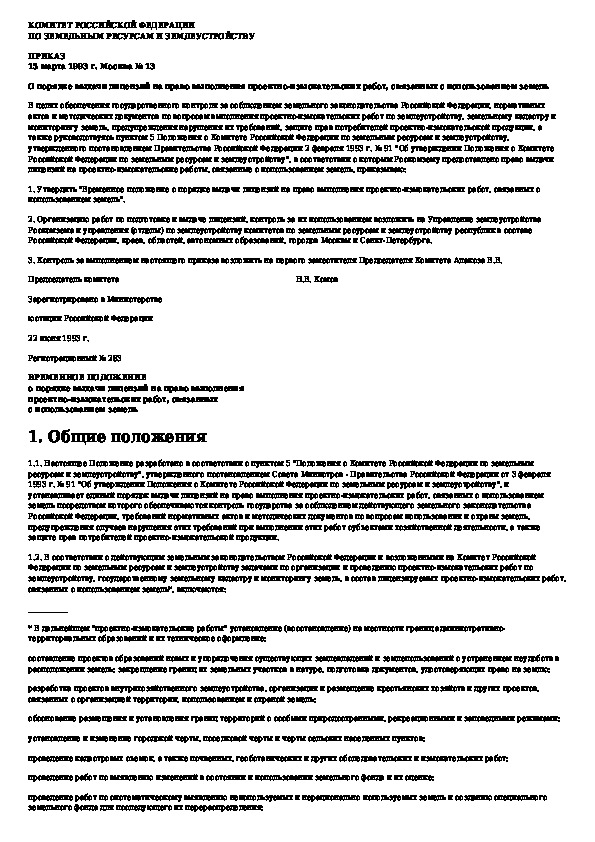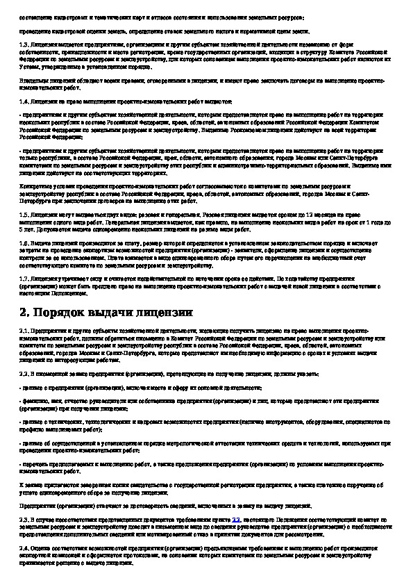 Наша цель состоит в том, чтобы предоставить вам быстрый доступ к содержанию документа О порядке выдачи лицензий на право выполнения проектно-изыскательских работ, связанных с использованием земель.