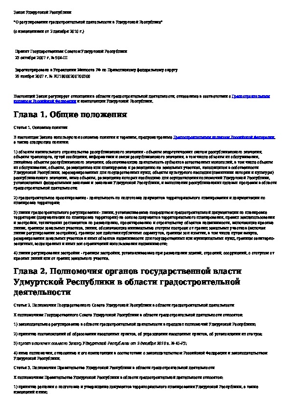 Наша цель состоит в том, чтобы предоставить вам быстрый доступ к содержанию документа О регулировании градостроительной деятельности в Удмуртской Республике.