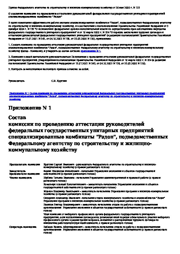 • Загрузка на компьютер - Вы можете также скачать О создании комиссии по проведению аттестации руководителей федеральных государственных унитарных предприятий специализированн на свой компьютер и сохранить его в файлах.