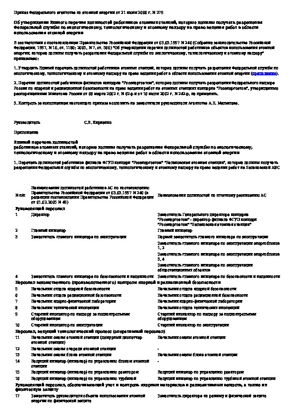 Наша цель состоит в том, чтобы предоставить вам быстрый доступ к содержанию документа Об утверждении Единого перечня должностей работников атомных станций, которые должны получать разрешения Федеральной службы по э.