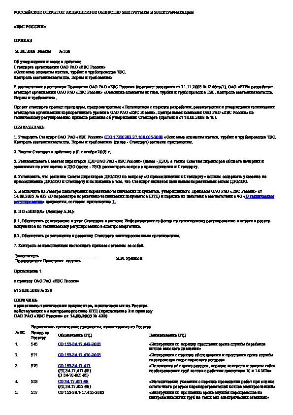 Наша цель состоит в том, чтобы предоставить вам быстрый доступ к содержанию документа Об утверждении и вводе в действие стандарта организации ОАО РАО "ЕЭС России" "Основные элементы котлов, турбин и трубопроводов ТЭС. .
