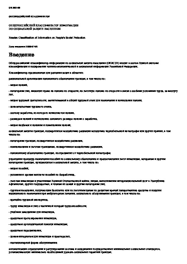 Общероссийский классификатор информации по социальной защите населения