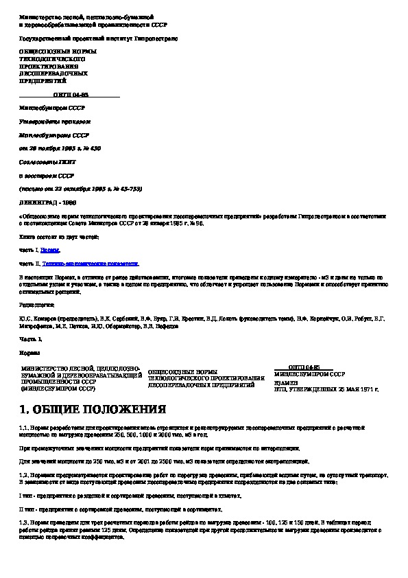 • Просмотр в полноэкранном режиме - легко просмотреть документ Общесоюзные нормы технологического проектирования лесоперевалочных предприятий (без загрузки его на свой компьютер).