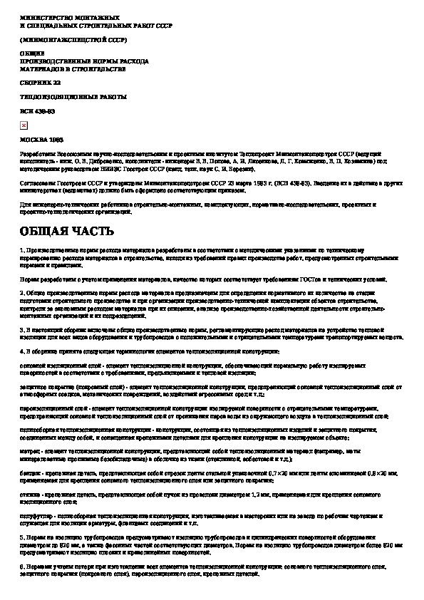 ВСН 438-83: Общие производственные нормы расхода материалов в строительстве. Сборник 22. Теплоизоляционные работы