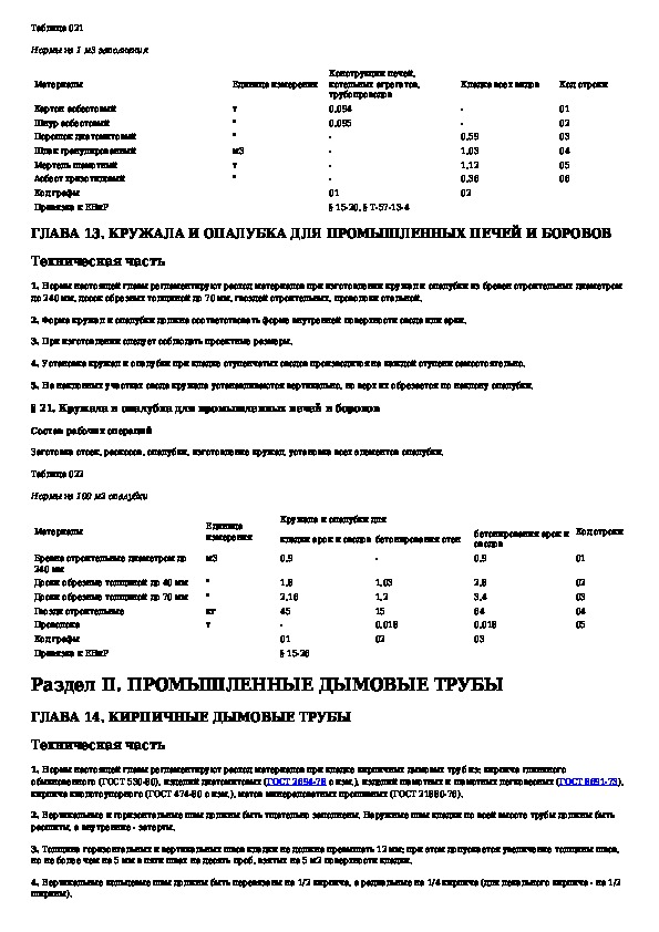 Общие производственные нормы расхода материалов в строительстве. Сборник 26. Кладка промышленных печей и дымовых труб