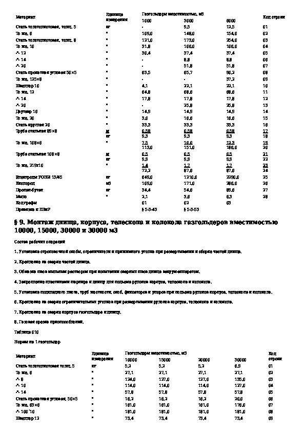 Общие производственные нормы расхода материалов в строительстве. Сборник 7. Монтаж стальных конструкций резервуаров и газгольдер