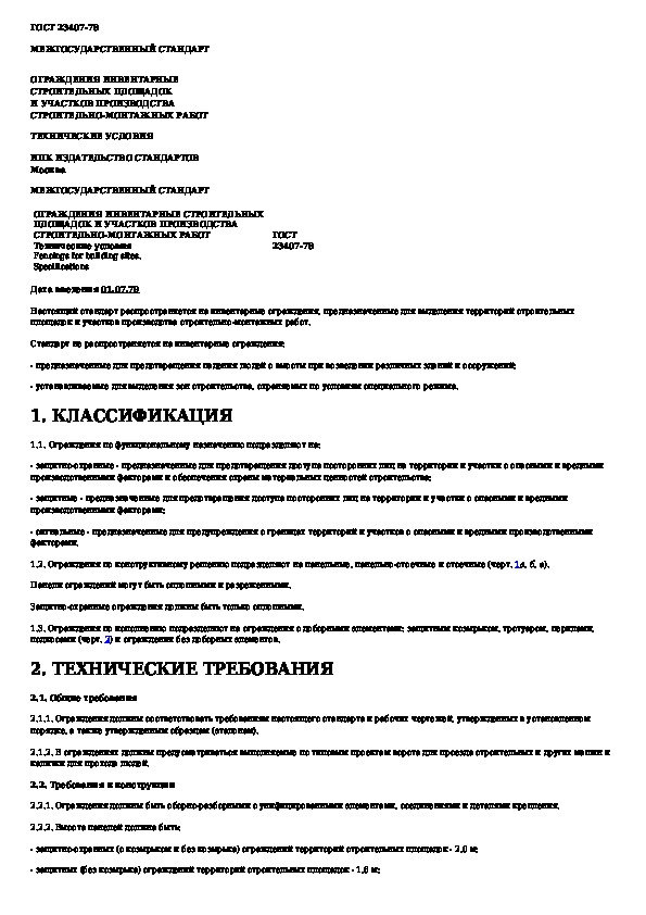 ГОСТ 23407-78: Ограждения инвентарные строительных площадок и участков производства строительно-монтажных работ. Технические условия