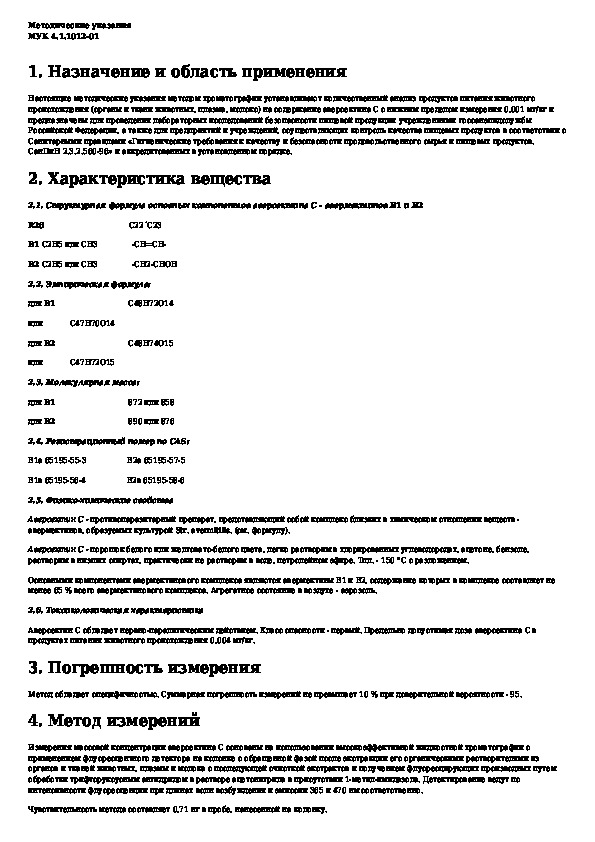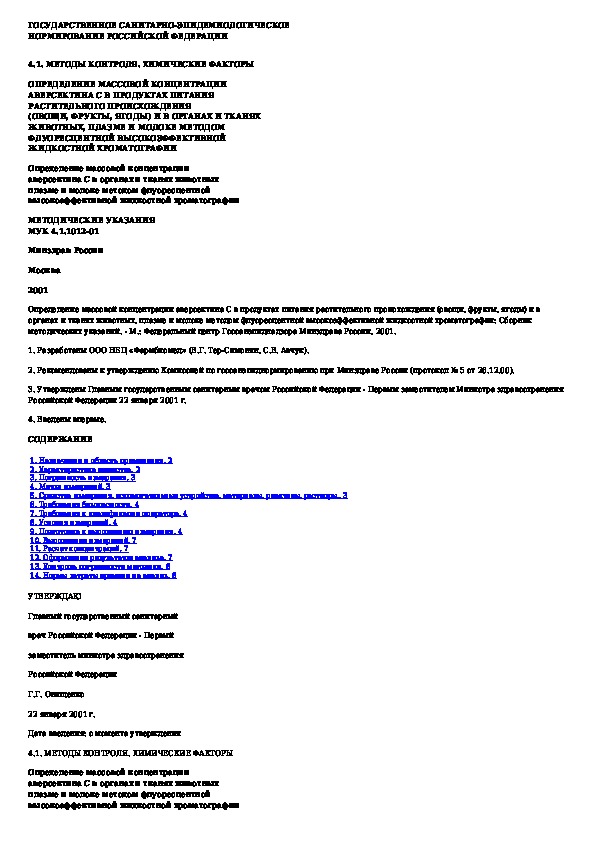 Обозначение: МУК 4.1.1012-01