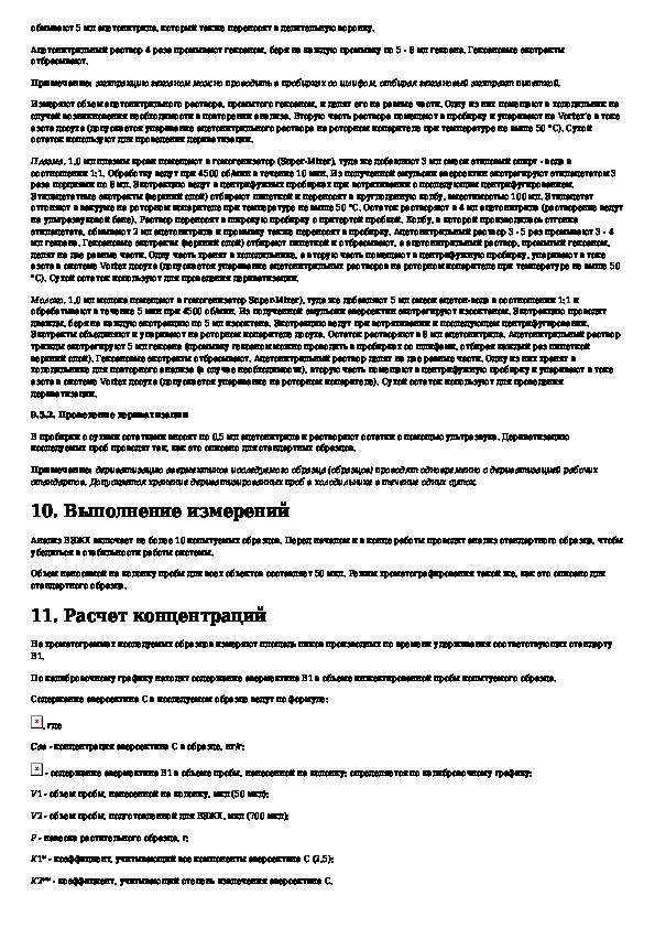 МУК 4.1.1012-01: Определение массовой концентрации аверсектина С в органах и тканях животных, плазме и молоке методом флуоресцентной высокоэффект