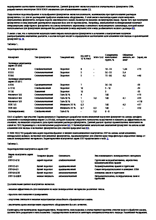 Органические флокулянты в технологии очистки природных и промышленных сточных вод и обработки осадка