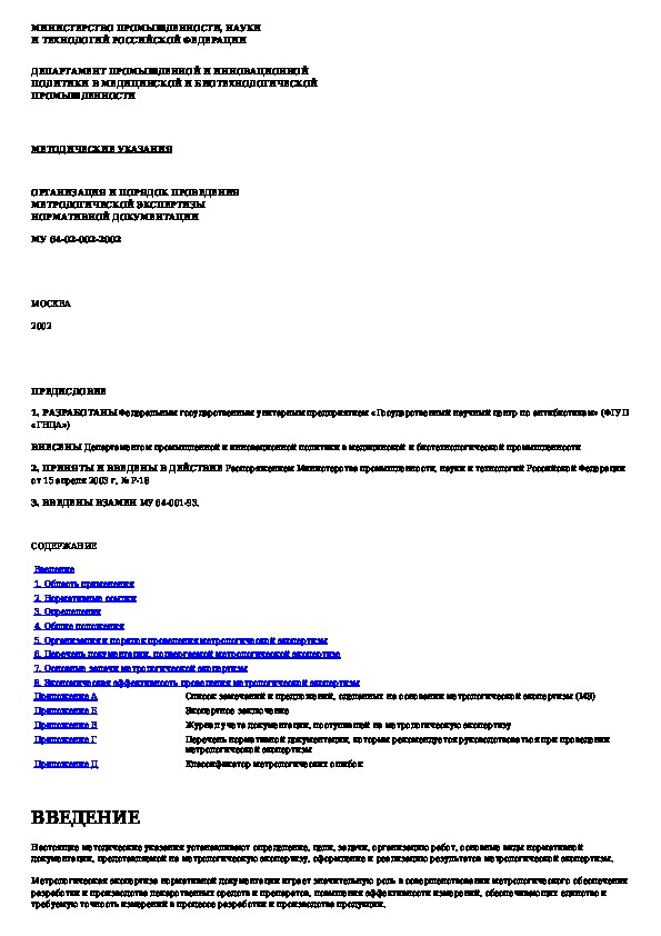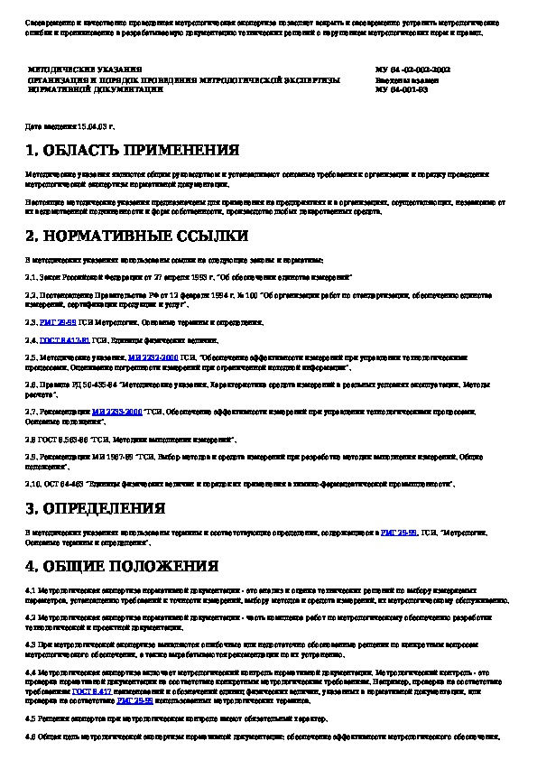 МУ 64-02-002-2002: Организация и порядок проведения метрологической экспертизы нормативной документации