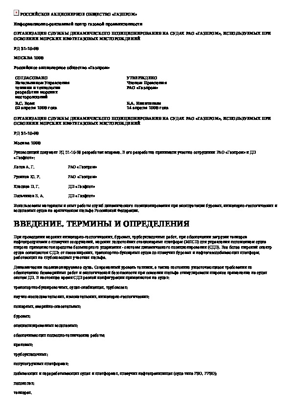 Наша цель состоит в том, чтобы предоставить вам быстрый доступ к содержанию документа Организация службы динамического позиционирования на судах РАО "Газпром" используемых при освоении морских нефтегазовых месторо.