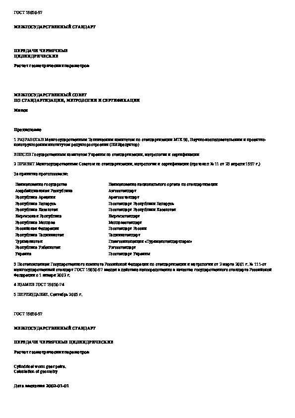 ГОСТ 19650-97: Передачи червячные цилиндрические. Расчет геометрических параметров