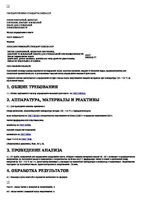 • Просмотр в полноэкранном режиме - легко просмотреть документ Песок кварцевый, молотые песчаник, кварцит и жильный кварц для стекольной промышленности. Метод определения влаги (без загрузки его на свой компьютер).