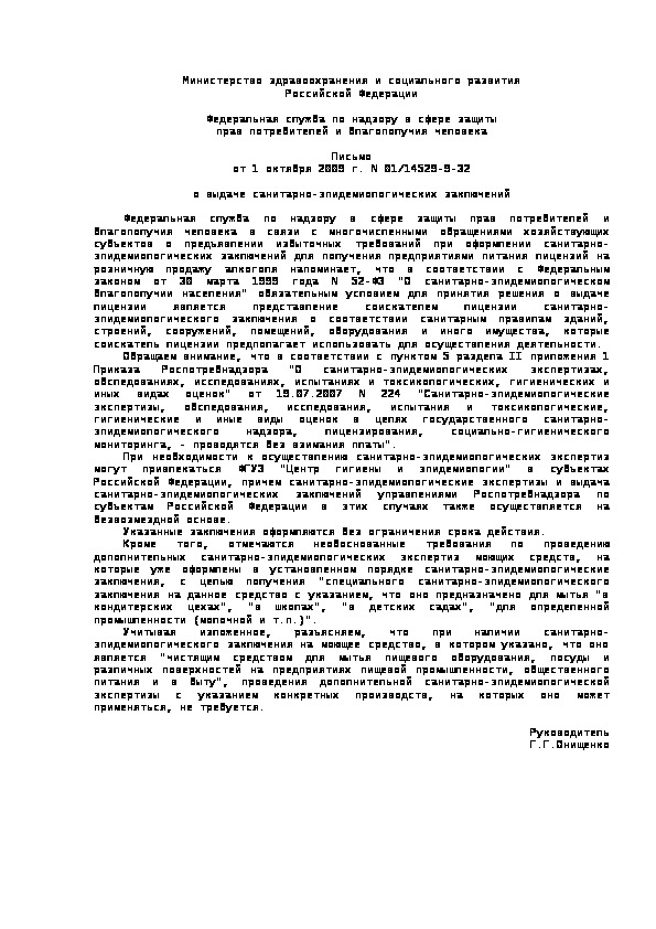 Письмо о выдаче санитарно-эпидемиологических заключений от 1 октября 2009 г. N 0114529-9-32.doc