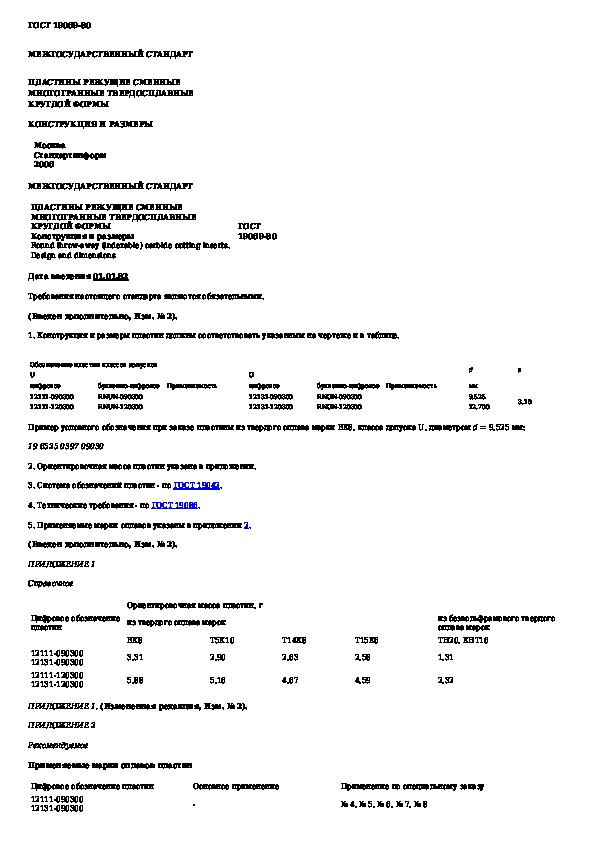 Наша цель состоит в том, чтобы предоставить вам быстрый доступ к содержанию документа Пластины режущие сменные многогранные твердосплавные круглой формы. Конструкция и размеры.