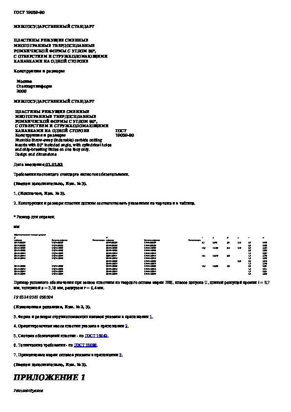 Наша цель состоит в том, чтобы предоставить вам быстрый доступ к содержанию документа Пластины режущие сменные многогранные твердосплавные ромбической формы с углом 80 град. с отверстием и стружколомающими канавками.